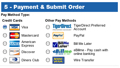 Сейчас продавцы предлагают клиентам несколько способов оплаты покупок. Розничный продавец может потерять бизнес лишь потому, что не поддерживает предпочтительный способ оплаты своих клиентов. Мелким розничным продавцам необходимо анализировать требования потребителей, посещающих их сайты, а затем, основываясь на выводах, включать желаемые способы оплаты. Оплата через кредитные карты, PayPal, Google Checkout и Bill Me Later являются наиболее распространенными способами на крупных сайтах электронной коммерции.