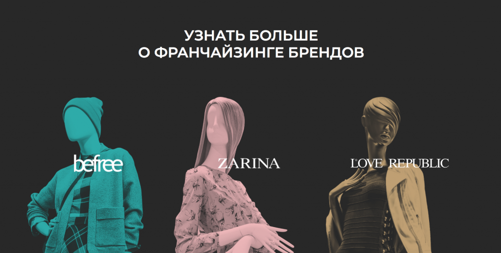 Если ваша компания работает с франчайзи, очень важно выделить всю информацию для партнеров в отдельную страницу или лэндинг, на котором простым языком перечислены все возможности сотрудничества. В идеале схема работы должна быть максимально прозрачна и также указана на разделе, как это сделано, например, на сайте Melon Fashion Group, который разработали в ARTW.
