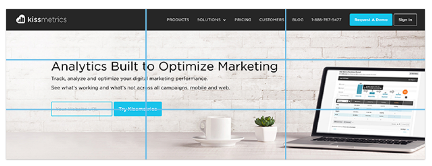 Kissmetrics также помещает свой призыв к действию на нижнем левом перекрестке: