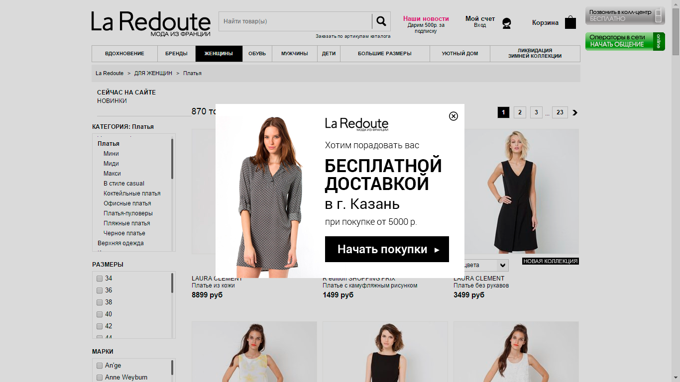Изображение 1: Как подобное сообщение может выглядеть на сайте интернет-магазина La Redoute[/caption]