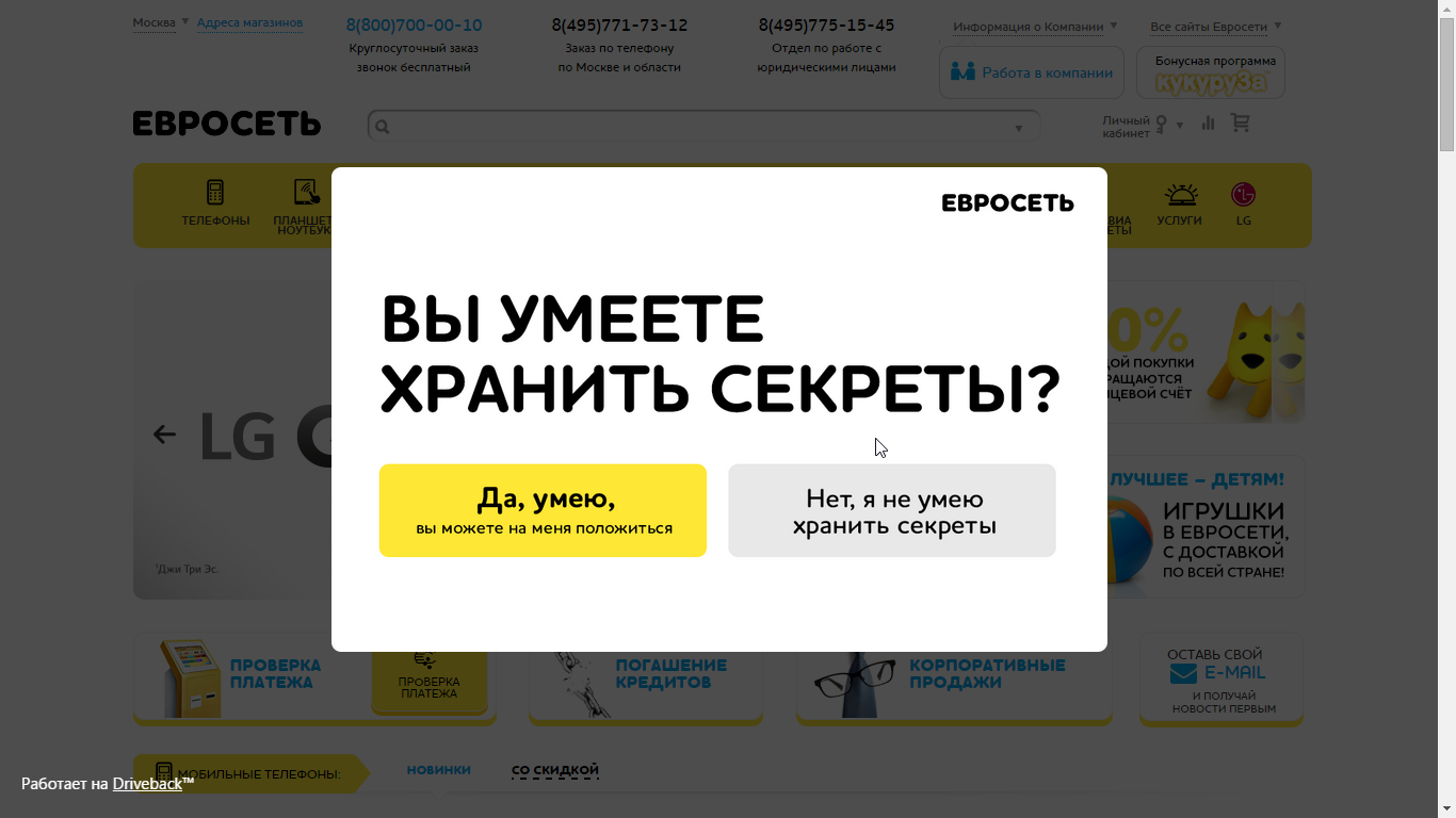 Изображение 5: Пример сообщения на сайте Евросеть (шаг 1)[/caption]