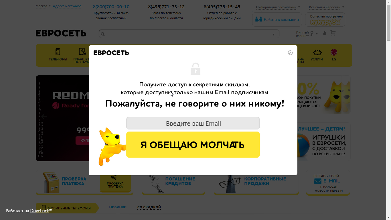 Демонстрируя такое сообщение при выходе с сайта, вы можете быть уверены, что пользователь уже принял решение о том, насколько ему интересен ваш магазин и ваши товары. И если он принял положительное решение, то вероятность того, что он подпишется на вашу рассылку возрастает в разы.