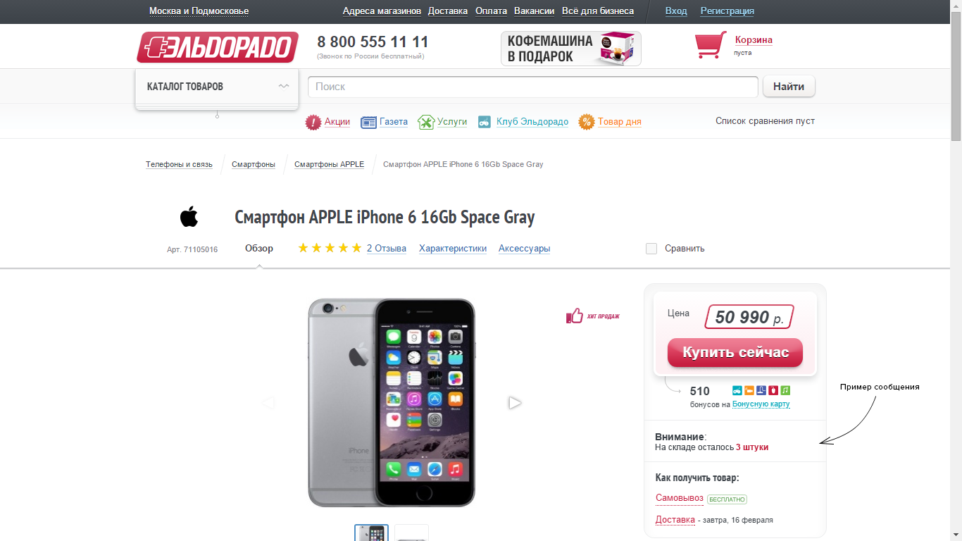 Изображение 13: Как подобное сообщение может выглядеть на сайте интернет-магазина Эльдорадо[/caption]