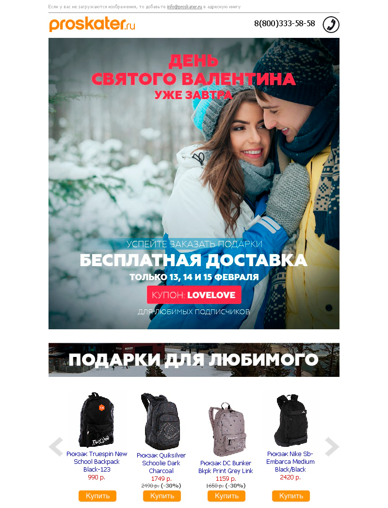 Изображение 27: Пример маркетинговой кампании для email-подписчиков Proskater[/caption]