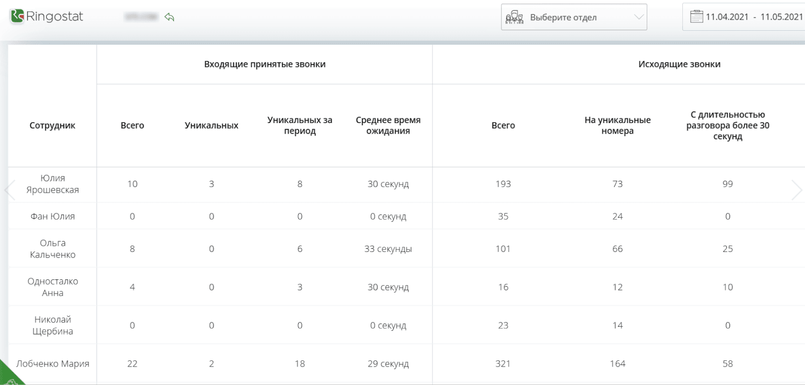 Советую также анализировать отчеты по эффективности сотрудников. Обращайте внимание, кто из сотрудников совершил меньше звонков, у кого разговоры длятся сильно длиннее или короче среднего показателя. Это поможет понять, кому из сотрудников нужна помощь.