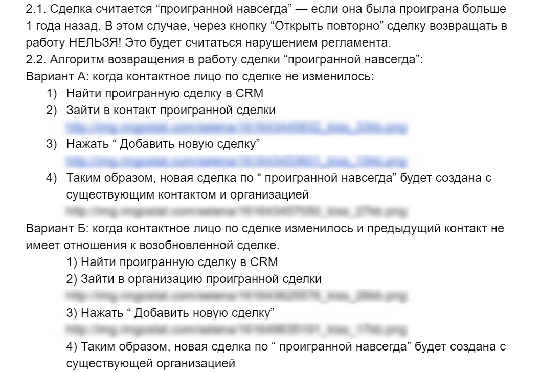 Фрагмент регламента по работе с CRM