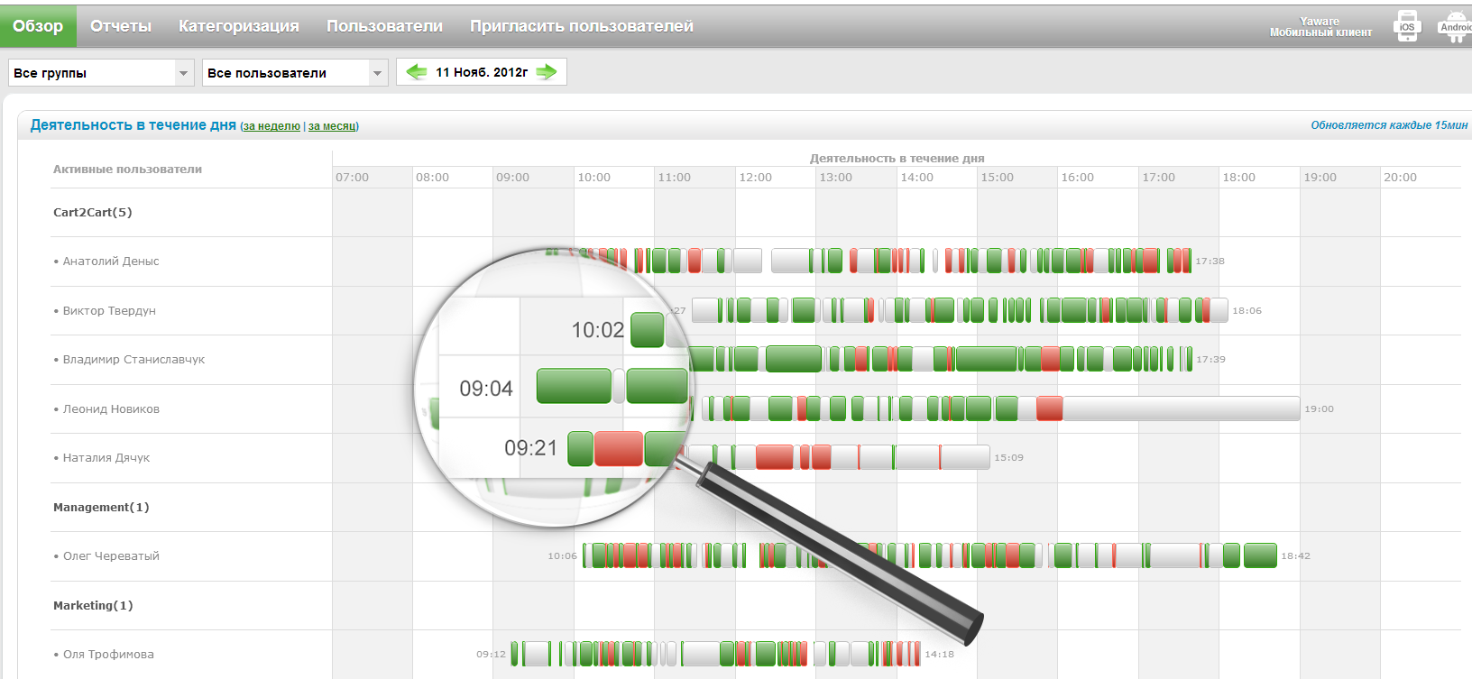 Также используем сервис в IT-отделе. Раньше некоторые сотрудники могли использовать технические неполадки как повод не работать. Теперь в спорных случаях мы используем Yaware: сравниваем статистику по нескольким сотрудникам и уже тогда принимаем решение.