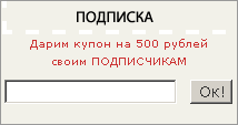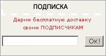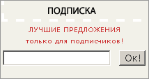 Как видите, в форме использовано прямое обращение "своим подписчикам" и регистром выделены ключевые слова предложения. В заголовке также использована простая фраза - "Подписка", вместо стандартной "Подписка на новости" или "Подписка на рассылку", которые снижают процент желающих подписаться. Фраза "Подписка" не заставляет долго задерживаться на себе и не "засоряет" предложение ненужной информацией. То, на что подписывается посетитель выделено красным цветом.