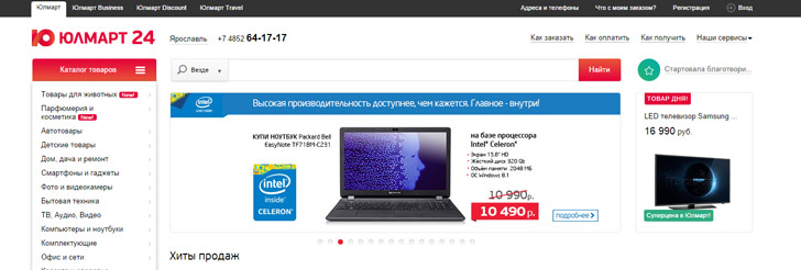 Второй момент, который упускают некоторые владельцы магазинов - потенциал шапки в области информирования посетителей. Простой пример - обратите внимание на текущую страницу интернет-магазина Юлмарт: