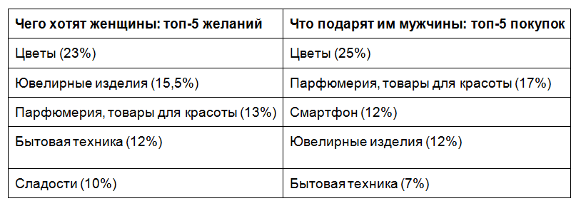 Что анализировали: сотни тысяч покупок женской и мужской аудитории.Основные выводы: В среднем женщины потратили в 2,5 раза больше на подарки к 23 февраля, чем мужчины тратят к 8 марта. Женщины собирали подарки из более мелких товаров (например, книга, парфюм, носки), мужчины предпочитали один, но дорогой подарок (смартфоны, кухонная техника).