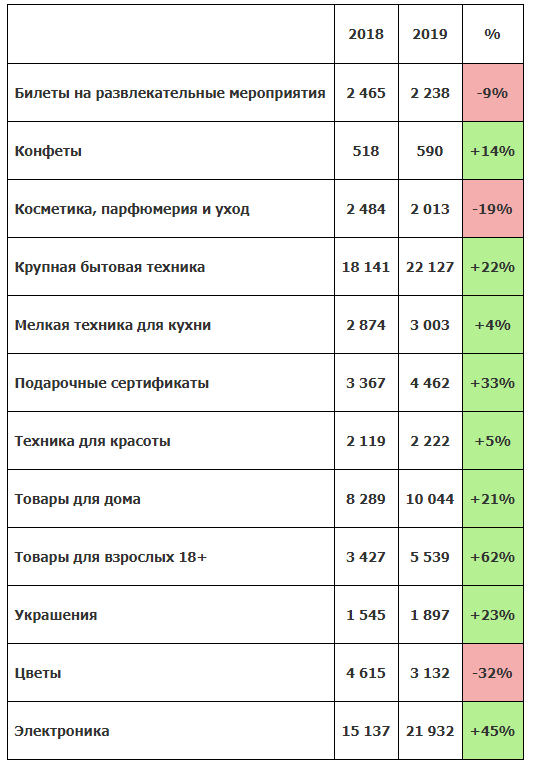- Бытовая техника: товары для здоровья, красоты и ухода за одеждой. В топе продаж - фены (+507%), весы (+449%), отпариватели (+391%), щипцы для укладки волос (+381%), электрические зубные щетки (+368%).