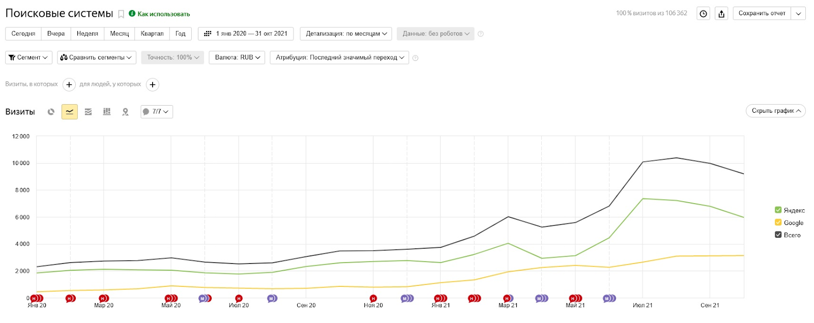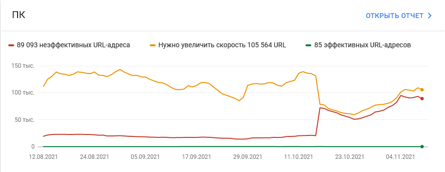 Этот параметр тоже сильно влияет на поисковую выдачу. Отчетность по данным показателям значительно упрощает решение проблем.