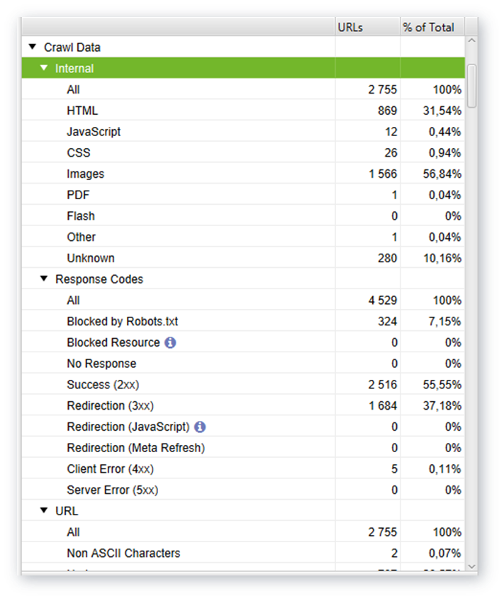 Данный инструмент собирает массу технических параметров, по каждому из которых есть детализация с возможностью выгрузки отчета.