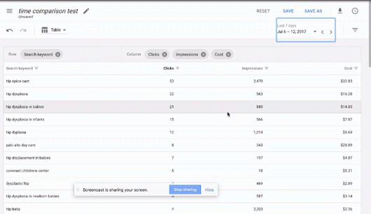 Google представила обновление редактора AdWords. Как сообщается в блоге компании, появилась возможность сравнивать эффективность рекламы за два отрезка времени.
