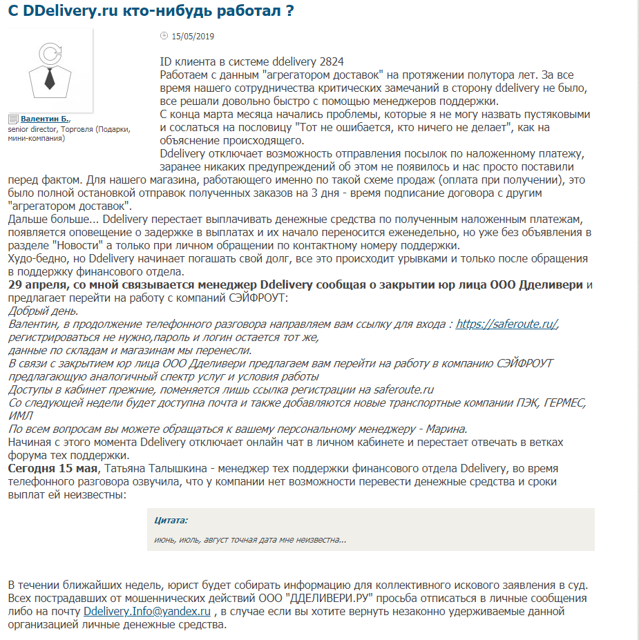 Серьёзные проблемы у клиентов сервиса начались с конца марта. В конце апреля клиентам компании стали приходить предложения перейти на работу с компаний Сэйфроут.
