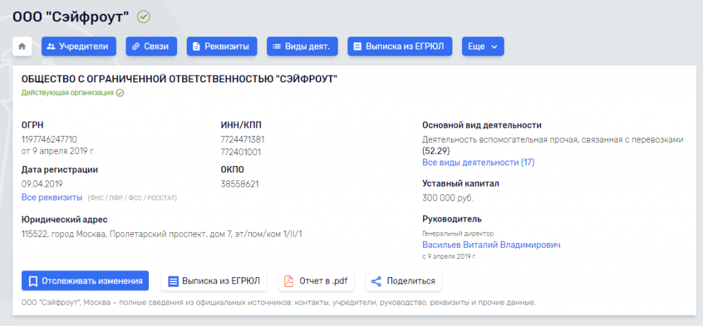 Сейчас на сайте saferoute.ru не предусмотрено открытого входа. ООО "Сэйфроут" зарегистрировано в апреле 2019 года, однако агрегатор уже работает с 12 службами доставки.