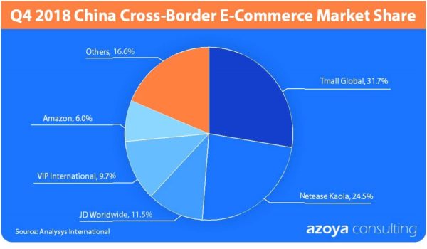 По данным китайской аналитической компании Analysys, объем трансграничного рынка электронной коммерции Китая в первом квартале 2019 года составил $1 трлн. Доля Tmall Global на этом рынке составила 31,7%, а доля Kaola — 24,5%. Это намного больше, чем у их ближайших конкурентов JD Worldwide (11,5%), VIP International (9,7%).