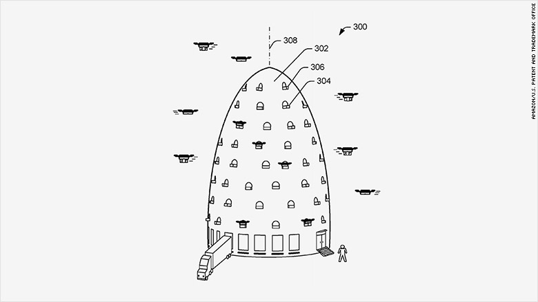 В декабре Amazon подал патентную заявку на создание воздушных центров выполнения заказов. На летательном аппарате, напоминающем дирижабль, компания планирует хранить наиболее популярные товары, которые будут доставлять клиентам с помощью дронов. В феврале компания запатентовала парашюты для доставки товаров с помощью беспилотников.