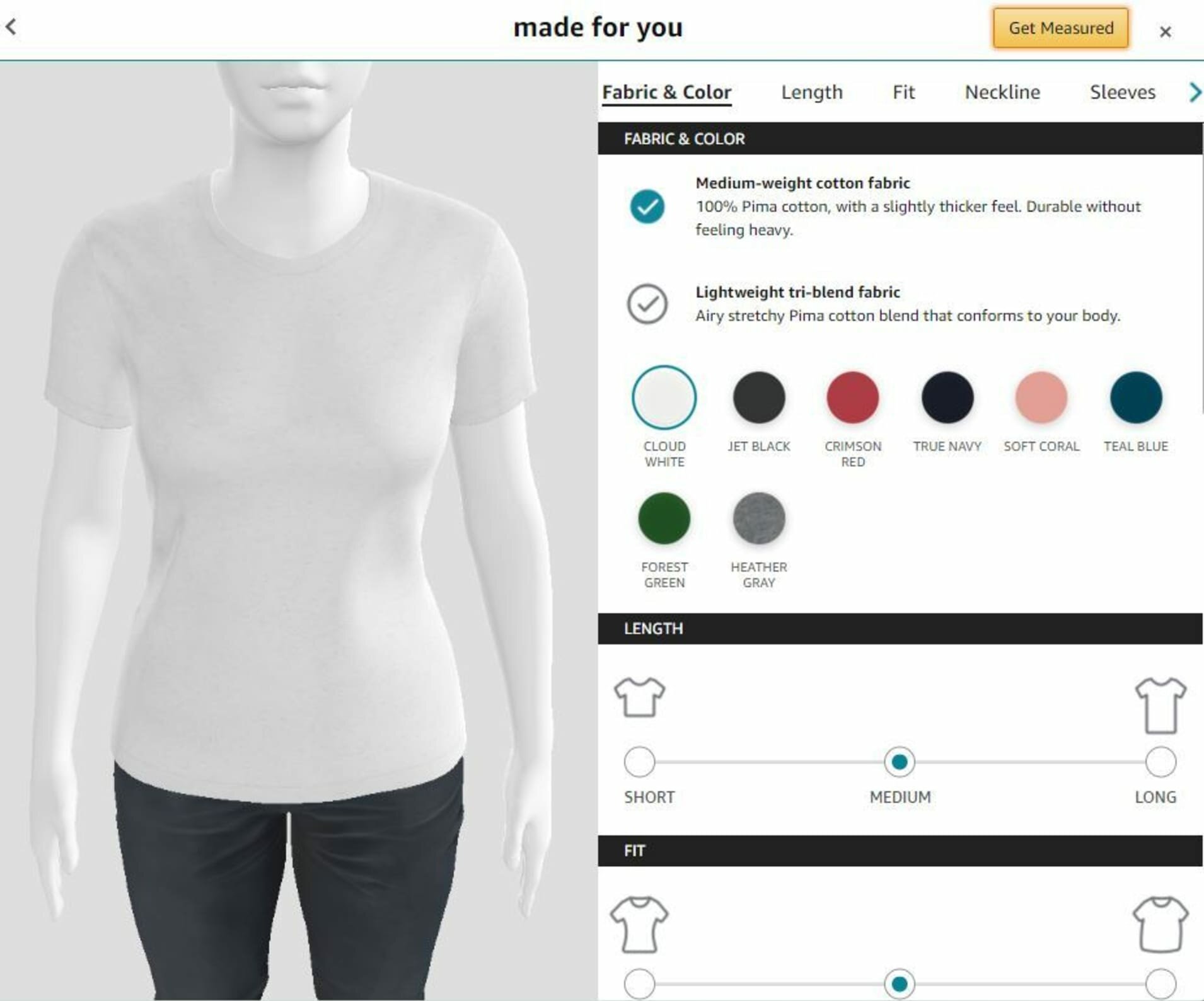 Как только 3D-модель будет создана, пользователь переходит к выбору ткани, размеру воротника, длины рукавов и самой футболки, а также выбирает как она будет сидеть на теле. На данный момент для кастомизации доступны только футболки, но в будущем линейку одеды планируют расширять.