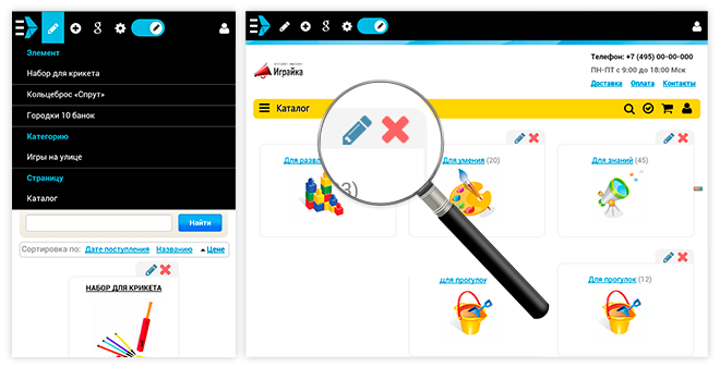 «Тач»-интерфейс позволяет решить большинство оперативных задач управления сайтом и интернет магазином: