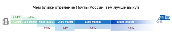 - 40% всех покупателей живут в радиусе 500 метров от отделения Почты России.