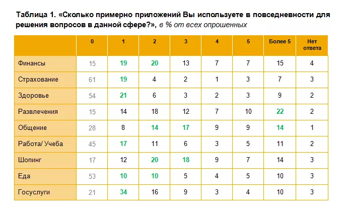 Интересно, что россияне, как правило, используют не одно, а несколько приложений для решения задач внутри одной сферы. В сфере финансов и доставки еды в большинстве случаев россияне используют 1 или 2 приложения. А вот в сфере общения, а также онлайн-шопинга – 2-3.