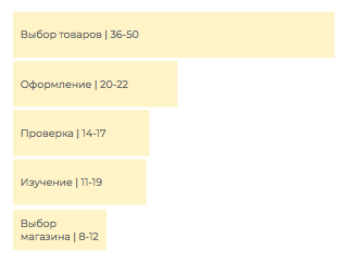 Далее идут этапы Проверки корзины покупок перед оформлением заказа, Изучения информации на сайте перед выбором товаров и Выбор магазина.