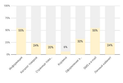 Вторым по сложности является этап оформления заказа, на котором покупатели проходят регистрацию, выбирают дату и время, получают подтверждение оформления и используют личный кабинет.