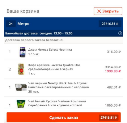 instamart по клику показывает покупателям содержимое корзины, которое открывается в новом компактном окне в правой части экрана