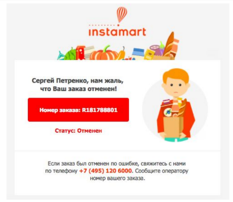 В письме об отмене заказа от instamart курьер интерактивный и плачет, вызывая эмоции у покупателя.