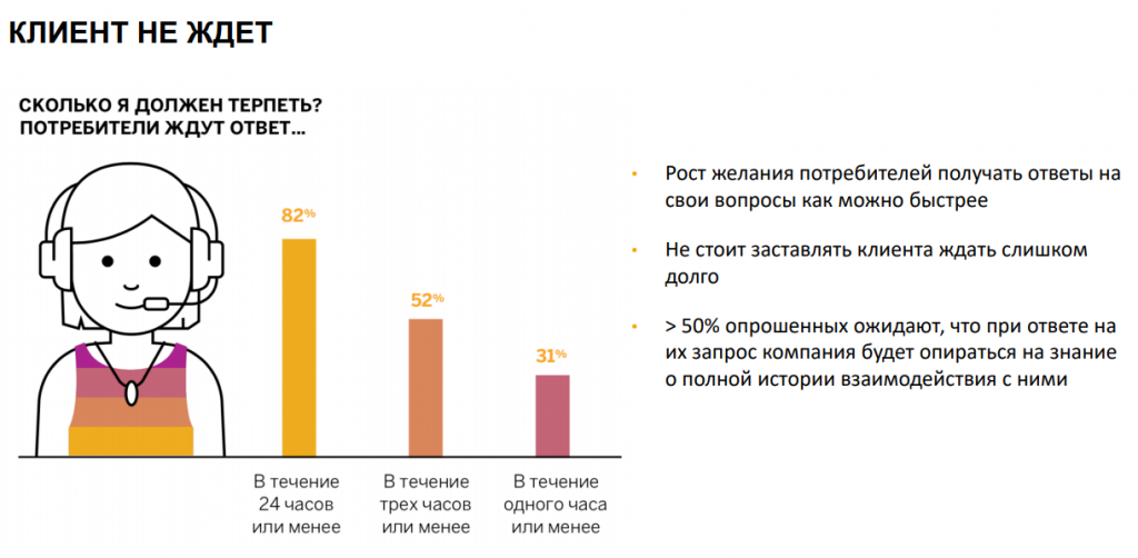 "Человек ждёт, что его запрос будет решаться за несколько часов. Если он не выполняется в течении суток, то люди перестают быть лояльными компании", - говорит Шарак.