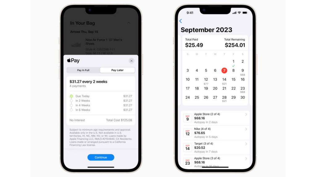 - После одобрения заявки, пользователи могут выбрать опцию "Pay Later" при оплате покупки через Apple Pay.