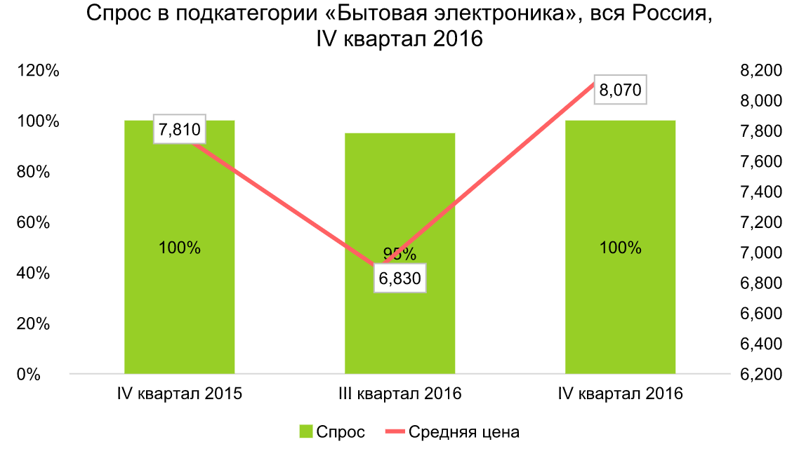 Второй по популярности среди посетителей раздела товаров общего спроса на Avito оказалась подкатегория «Бытовая электроника». За отчетный период интерес к ней вырос на 5%. В среднем покупателям пришлось заплатить за товары из этого раздела на 3% больше по сравнению с 2015 годом – 8 070 рублей.
