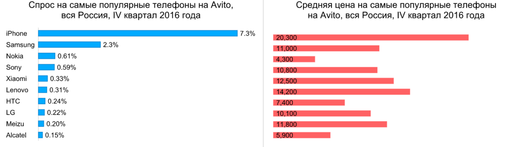 Самым популярным телефоном на Avito стал iPhone. Средняя стоимость мобильного устройства этого бренда составила 20 300 рублей. На втором месте оказались смартфоны Samsung со средней ценой 11 000 рублей, а на третьем месте – телефоны Nokia, за которые в среднем придется заплатить 4 300 рублей.