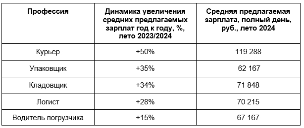 Профессии с самыми быстрорастущими средними предлагаемыми зарплатами в сфере курьерской доставки :