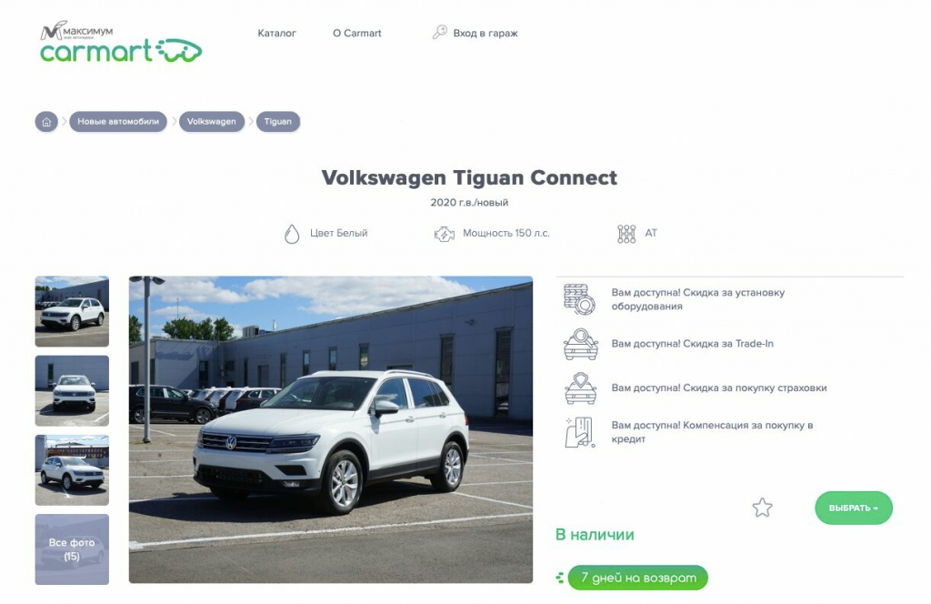 Немецкий бренд стал седьмой маркой в портфеле Carmart. Его выход в онлайн стал возможным после того, как автохолдинг "Максимум", управляющий Carmart, приобрел в конце мая в Санкт-Петербурге дилерский центр Volkswagen.
