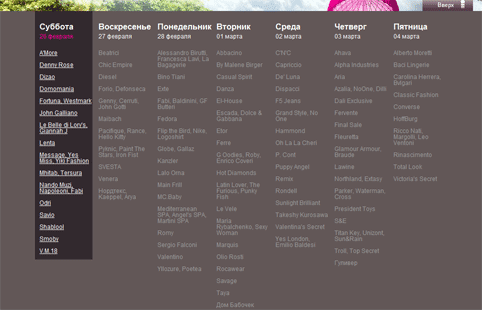 Качественно сделанный и продвинутый интернет-магазин одежды. Функционал удобный. Ниже приведенного скриншота алфавитный указатель с наименованиями брендов. Очень большой ассортимент, теряешься первое время и глаза разбегаются. Ни в коем случае не показывайте этот интернет-магазин своим девушкам/женам! Удобные способы оплаты, в том числе через электронные платежные системы. Удобная доставка, возможности обмена и возврата.