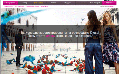 Посетитель, увидевший что в ближайшие выходные будет распродажа Diesel, может одним нажатием "застобить" себе место на распродажу.