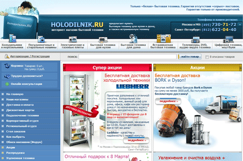 www.holodilnik.ru Интернет-магазин холодильников и бытовой техники (оборот 2 млрд. руб.)