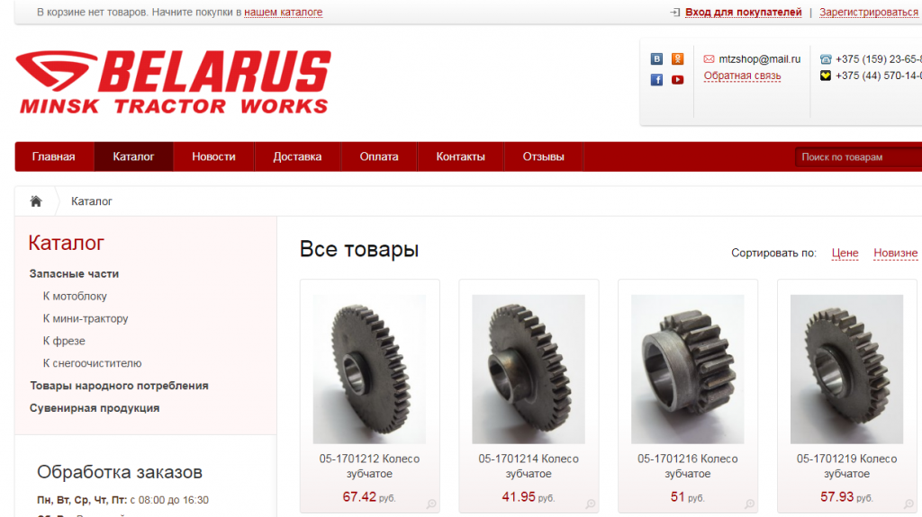 Там можно приобрести запчасти к мини-технике производства предприятий «МТЗ-Холдинга». В ассортименте магазина - запасные части к мотоблокам, мини-тракторам, фрезе, снегоочистителю, товары народного потребления.