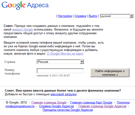 Довольно просто. Переходим на страницу добавления Google.Адреса и пробуем проверить телефонный номер вашей компании или интернет-магазина на предмет наличия в справочнике.