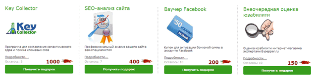 Эти бонусы вы сможете менять на вполне реальные и крайне полезные для вас и вашего бизнеса вещи: книги, программы, премиум-доступы в различные e-commerce сервисы, скидки и прочие выгодные предложения, предоставленные нашими партнерами. Уверяем, список подарков будет постоянно расширяться и только расти.