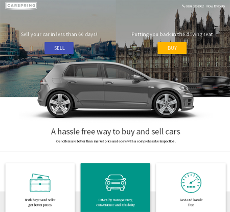 В настоящее время проект, созданный в 2015 году, развивают в Лондоне и прилегающих районах. Ключевое преимущество CarSpring, по мнению основателей, – предоставление услуг по приобретению качественного подержанного автомобиля "под ключ".