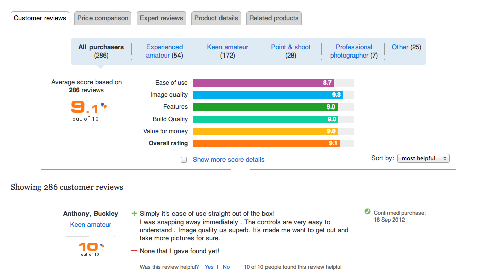 Именно поэтому онлайн-гипермаркет Amazon быстро расставляет все на свои места вопросом: «был ли этот отзыв полезен?». На основании этой информации система анализирует наиболее полезные отзывы и выводит их первее остальных.