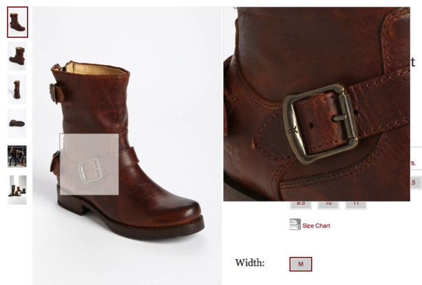 Например, интернет-магазин Nordstrom позволяет покупателям увеличить фотографии товара и посмотреть на такие мелкие элементы как пряжки и ремешки.