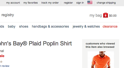 Например, JC Penney позволяет покупателям изменить страну доставки и валюту через значок флага в правом верхнем углу экрана.