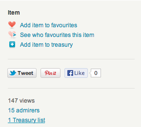 Интернет-магазин Etsy показывает статистику по количеству просмотров товара, и людей, которые каким-либо образом отреагировали на него, добавив в свои списки.