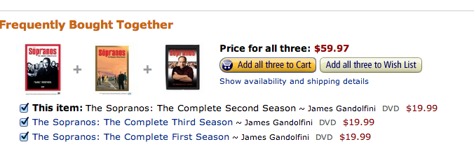 Рассматривая тот же Amazon, можно увидеть, что он анализирует просматриваемые вами товары и предлагает докупить сильно схожие товары набором по гораздо выгодной цене, чем если покупать их по отдельности.