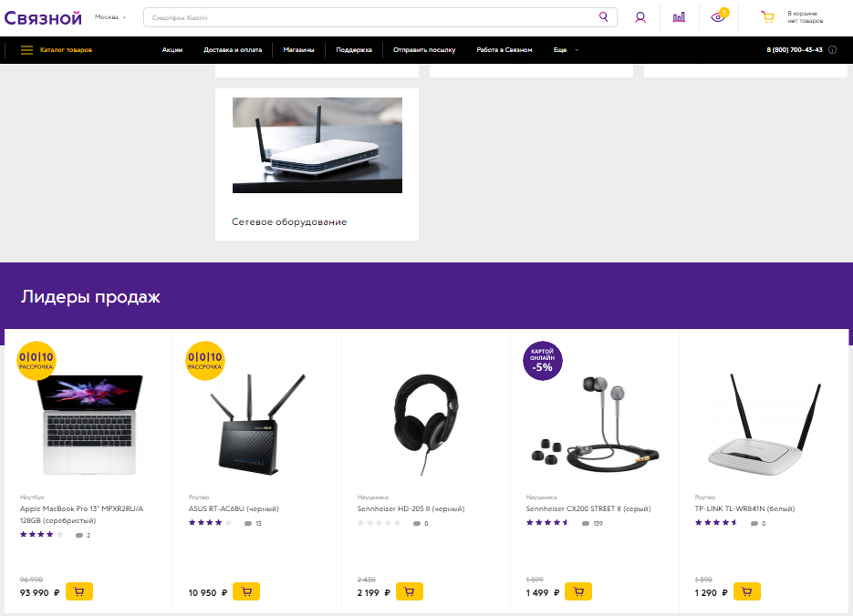 «Связной», раздел «Ноутбуки и компьютеры»