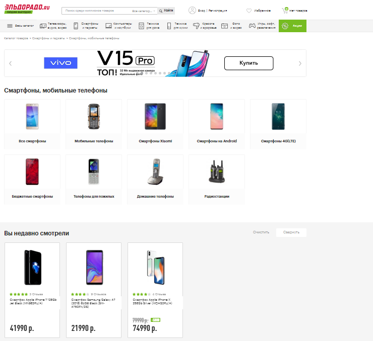 Где размещаем: В основной контентной области. Важный момент — акции и новинки размещаем сверху, так как нам важно обратить на них особое внимание и спровоцировать человека кликнуть и перейти в каталог. Рекомендации — сразу под ними.Примеры удачного размещения: